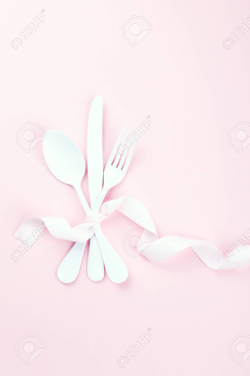 Romantic Table Setting In Pink Colors Light Pastel Pink Background