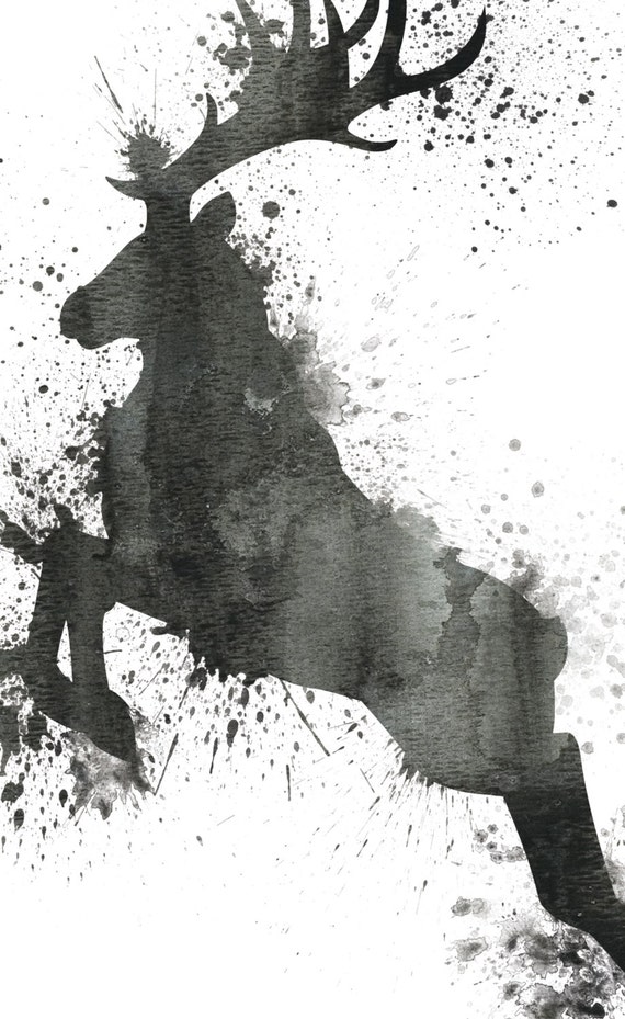 Watercolor Deer Print Black And White Art Deer Wall Art Etsy