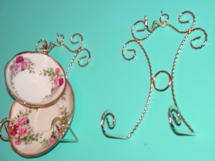 Vintage Tea Cup Saucer Plate Holder Gold Twisted Wire Display