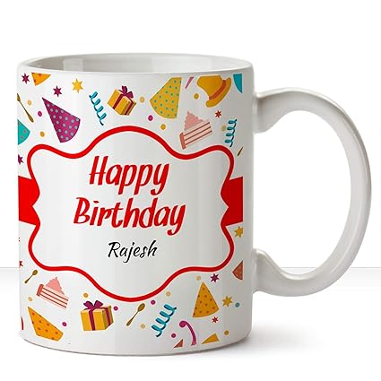 Buy Huppme Happy Birthday Rajesh Ceramic Name White Coffee Mug