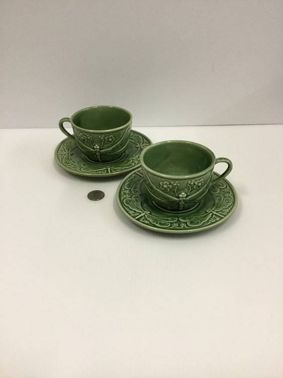 2 Mint Bordallo Pinheiro Dragonfly Cups And Saucers Portugal Etsy