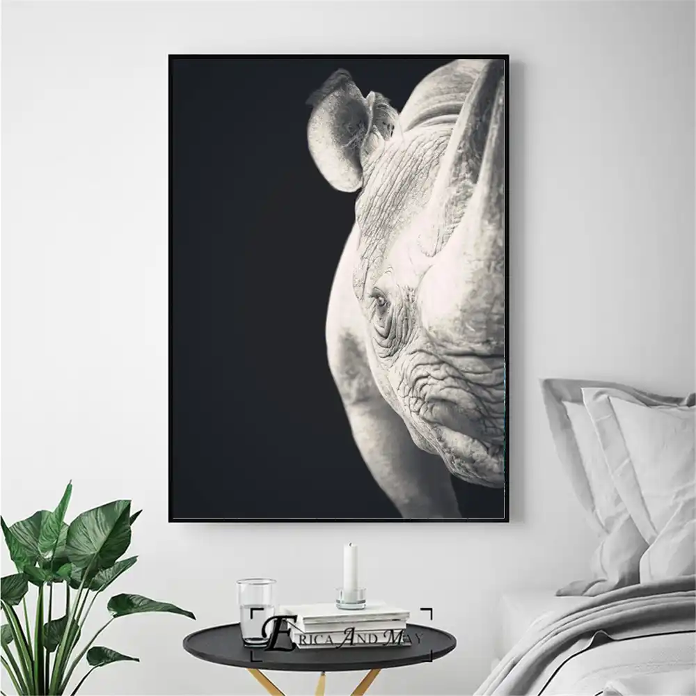 Rhino Rhinoceros Black And White Canvas Fine Art Poster Print Wall