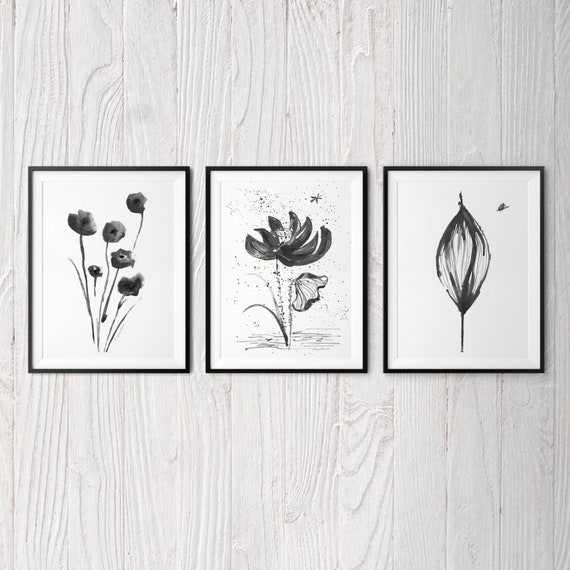 Asian Wall Art Black And White Wall Art Chinese Painting Set Etsy