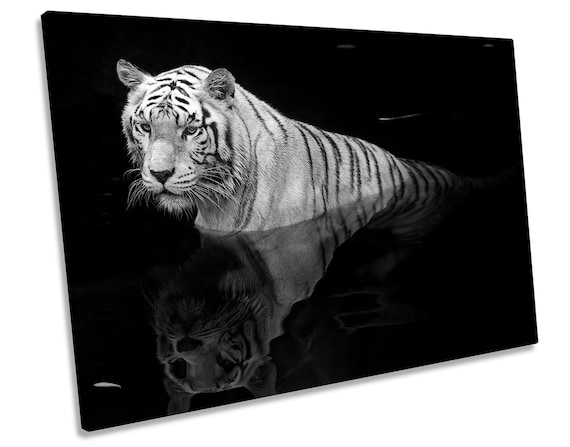 White Tiger Wildlife Black Canvas Wall Art Framed Print Etsy