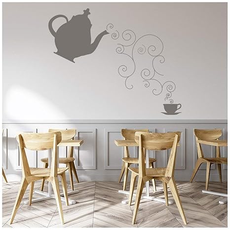 Amazon Com Teapot Cup Saucer Steam Swirls Food Drink Wall