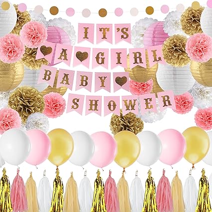 Amazon Com Baby Shower Decorations For Girl Pink And Gold Baby