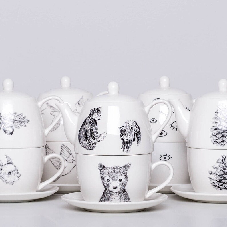 Porcelain Teapot Set With Bears Teapot Cup Saucer Gift For Etsy