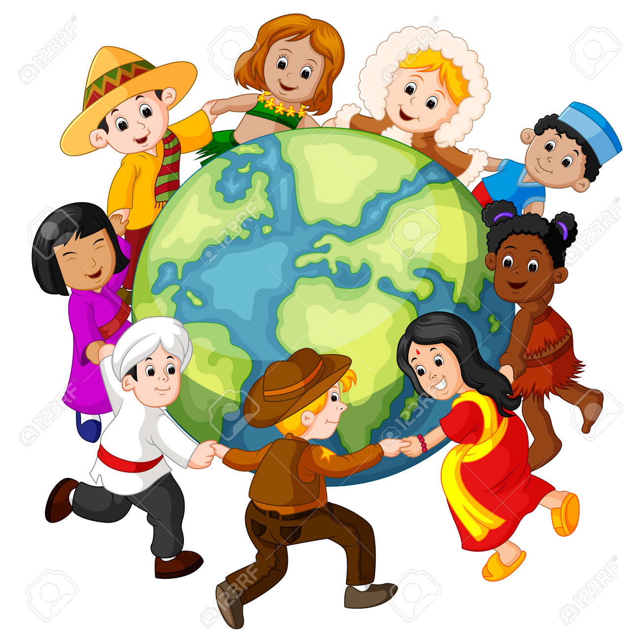 People Holding Hands Around The World Cartoon
